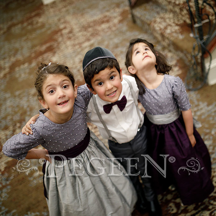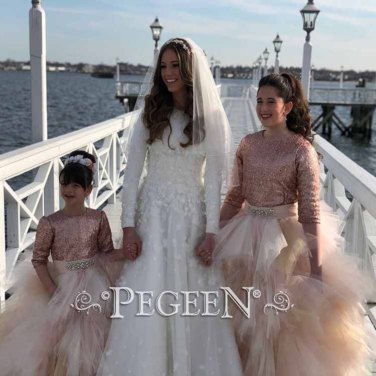 At Pegeen, we understand that for every parent, their little girl is a princess and our aim is to help you treat them like a real princess. We are a highly acclaimed, bespoke designer of luxury children's wear since 1982 and give you the chance of making your child feel truly special whether as a flower girl at a wedding, at her Bat Mitzvah, her first important dance, or as a debutante. No matter if it is a wedding, birthday party, festival, or some other special occasion, you can easily find the perfect dress for your little girl at our online store. We offer an exclusive collection of flower girl dresses, plus-size flower girl dresses, modest girl dresses, and luxury silk couture. We have a mesmerizing collection for every occasion for not only little girls and pre-teens but also for infants under one roof at prices affordable for everyone. When designing a dress, we take care of everything right from selecting quality fabric, embellishment, and other material to the size and color of the dress. We ensure that every dress we create feels comfy and soft to your children and the element of our creativity makes your child gain confidence that they are looking the best, smart, and gorgeous. If you already have some idea of what kind of flower girl dress you want for your little girl, we have got you covered as we also take custom made flower girl dress orders. Whether it is some particular design, fabric, embellishment, sleeve choice, crystals, tulle, or size, we can incorporate all the features you wish to have in a custom dress. We take the responsibility of making her cool and stunning by designing attire that sparkles at your event. Every dress that you spot on our website is designed in our own couture design studio which is located just a mile from Disney World, Orlando, USA. We serve shipping service for our American-made flower girl dresses worldwide. The best thing about shopping flower girl dresses with us is that we offer the entire versatile collection of dresses in 200 colors, with fit guarantee. Are you puzzled about what's the best attire for your attendants? Feel free to get in touch with us.